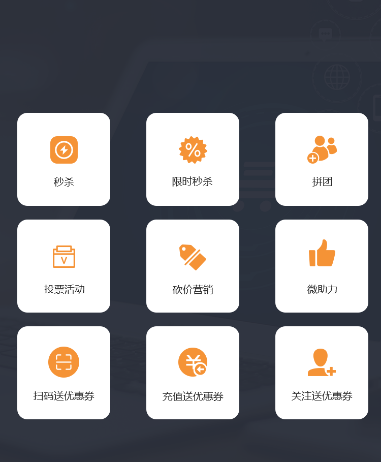提供促销、吸粉、优惠券、 积分 、互动等多种营销功具,