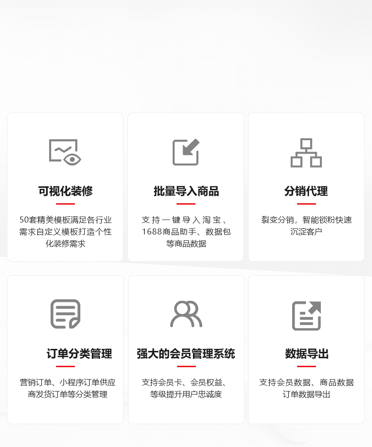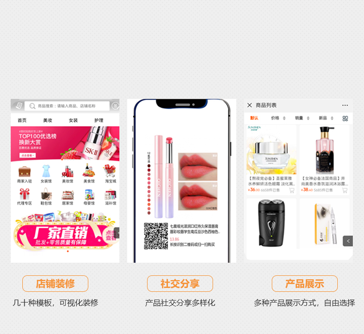 提供从装修、商品管理、订单支付、物流跟踪等一站式
